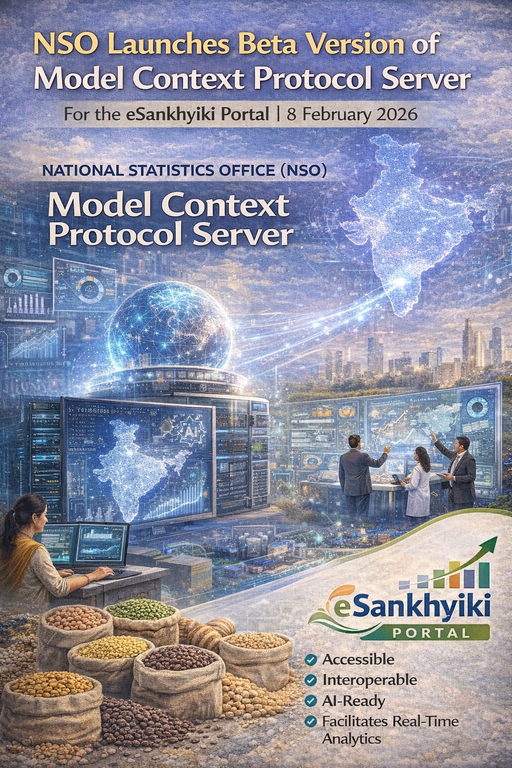 The National Statistics Office (NSO) under the Ministry of Statistics and Programme Implementation launched the beta version of the Model Context Protocol Server for the eSankhyiki portal on 8 February 2026. This initiative aims to make India’s official statistics more accessible, interoperable and AI-ready. The server will enable citizens, researchers, businesses and policymakers to integrate official datasets seamlessly with modern analytical tools.