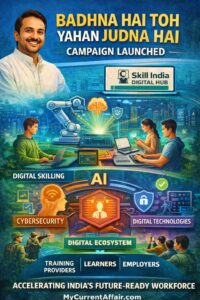 - Union Minister Jayant Chaudhary launched the campaign “Badhna Hai Toh Yahan Judna Hai” to promote digital skill development through the Skill India Digital Hub (SIDH).