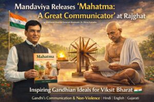 Union Minister Dr. Mansukh Mandaviya released the book “Mahatma: A Great Communicator” at Gandhi Darshan, Rajghat. Authored by Dr. Dhiraj Kakadia, the book highlights Mahatma Gandhi’s communication skills during the freedom movement and his use of non-violence as a powerful tool against British rule. Dr. Mandaviya said the book will inspire people to follow Gandhian ideals and contribute towards Viksit Bharat. Published in Hindi, English, and Gujarati, the event was attended by senior officials including Avinash Joshi, Bhupendra Kainthola, and Harshad Patel.