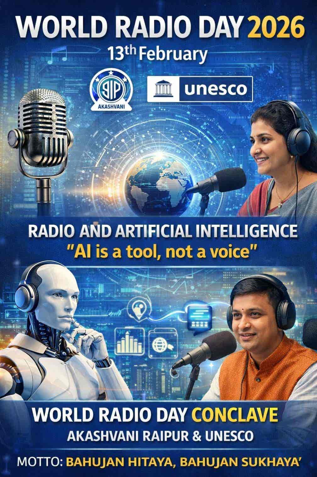World Radio Day 2026 is being observed today on 13th February to commemorate the establishment of the United Nations Radio in 1946. This year’s theme is “Radio and Artificial Intelligence: AI is a tool, not a voice.” To mark the occasion, Akashvani Raipur in collaboration with UNESCO is organising a World Radio Day Conclave.
